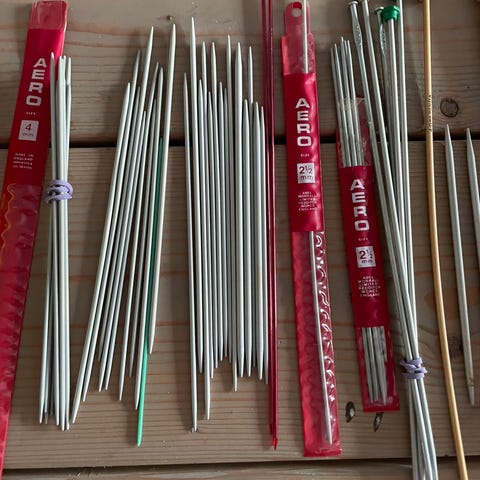 En samling af forskellige strikkepinde