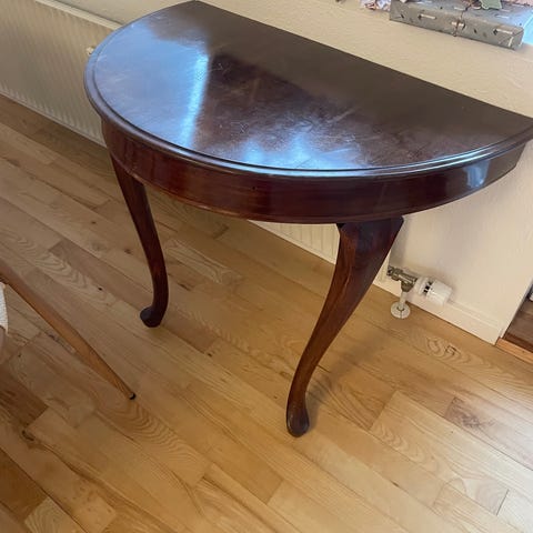 Flot hjørnebord i mørkt træ og kakler