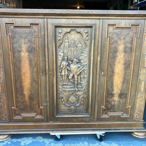 Højt dækketøjsskab i original snedkerkvalitet. HxBxD: 121x143x42