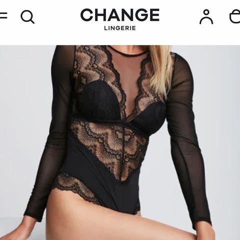 Smuk sort blonde Bodystocking, bruges som bluse. Change, str. S, Sort Brugt En gang. Som ny Blonde Fast pris