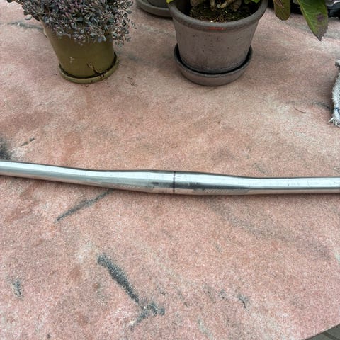 Alu 25,4 og 585mm. Købt til de lange ture, cykelferie og bikepacking, men fandt et andet styr der passede bedre på min turcykel, så nu får en anden chancen.