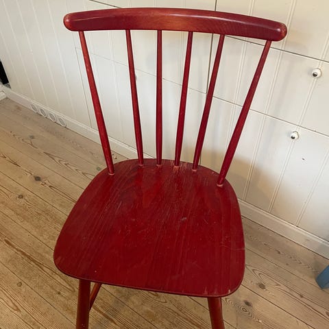 Stolen er i fin stand men malingen har fået lidt ridser, og det er prisen sat efter.