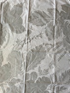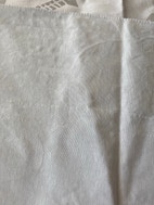 Var i en måned foldegardin og der er lidt rester af løbegangsbånd fra bagsiden - se billede. Der er kun syet i kanterne.