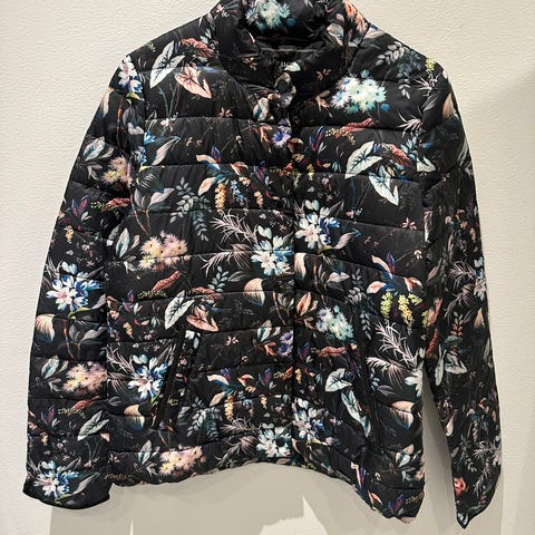 Ilse Jacobsen jakke i smukt mønster m skønne lyse farver. Længde 68cm i str.36