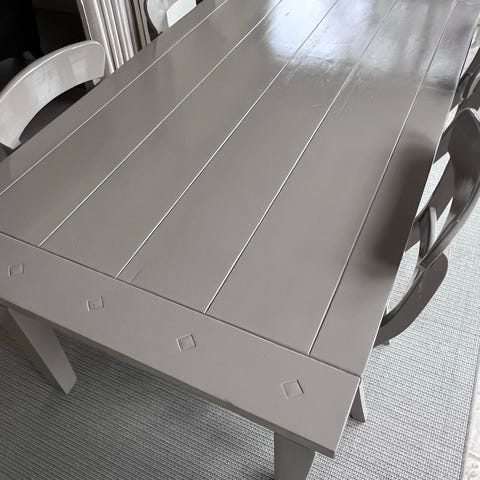 Bordet er i massivt træ og vejer en del. Bordplade kan afmonteres ved fragt, så det er lidt nemmere at fragte.