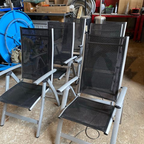 havebord og stole sæt i sort polyrattan. Sættet inkluderer et stort bord og 6 stole. Materialet er holdbart og vejrbestandigt.
