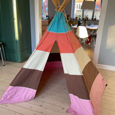 Hyggeligt og flot tipitelt til indendørs brug. Kraftigt stof.