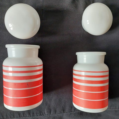 Glas, Opal krukker, Irma, 2 små opal krukker fra Irma.. De er fra 1970'erne og begge i perfekt stand..
