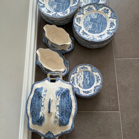 Engelsk fajance med smukke motiver - 3 tallerkner
