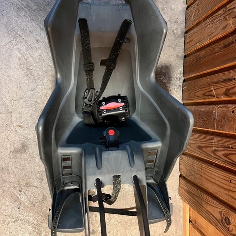 Fin cykelstol til børn - monteres på mors ellers fars cykel. Alt fingerer - trænger dog til en rengøring.