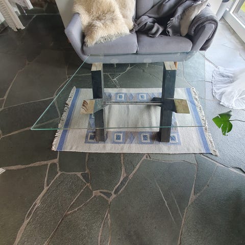 Glasbord, andet materiale, b: 50 h: 55, 2 smukke bronze bord med glasplade i to cm tykkelse, kan brugs som Sengebord, sidebord, blomstrebord... prisen er Per stk.