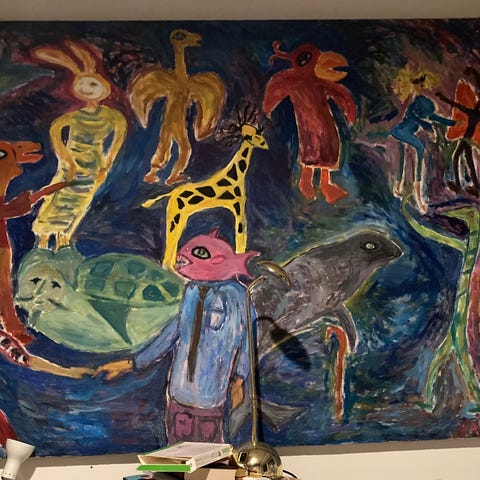 Smukt og farverigt maleri af Vibeke Lerfeldt Bjerker.