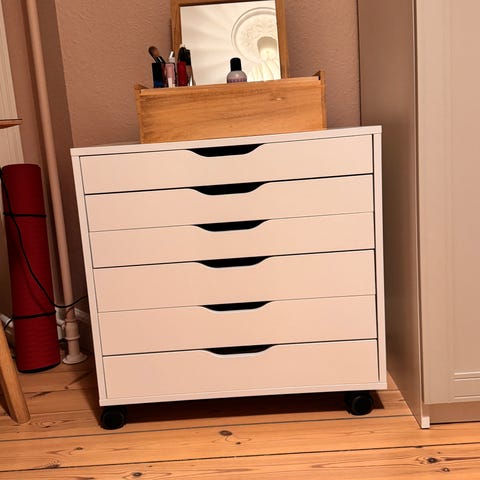 Alex kommode fra Ikea, fås ikke længere i sortbrun i Ikea.