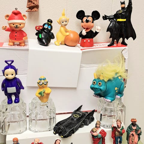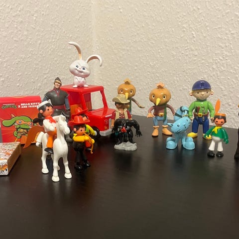 Retro legetøj . Nøglering . Lak æske hare kr 30,- /gl. 70'er Barbapapa pige 25,- /Retro kannibal indfødt figur nøglering kr 20,- /retro træ fisk nøglering med bevægelige led i kæden kr 20,- /Retro Matchbox England Rolls Royce bil kr 25,-