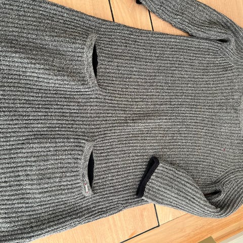 Strikkjole, Tommy Hilfiger, str. L, Grå, Strik/Cashmere, God men brugt, Så sød cotton/Cashmere strikblandings kjole med lommer foran og forneden ved ærmerne er der en tynd rødlig kant.Den fremstår velholdt,dejlig blød og varm at have på.Løstsiddende model