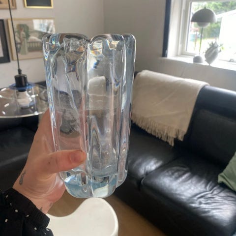 Vintage glasugle med slebne detaljer designet af Vicke Lindstrand for Kosta Glassbruk