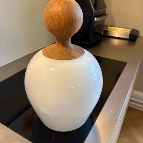 Home Art loftlampe lavet af hvidt glas. Lampen har en elegant form og er ideel til brug i stuer, soveværelser eller spisestuer. Designet giver et blødt lys og tilføjer et stilfuldt element til indretningen.