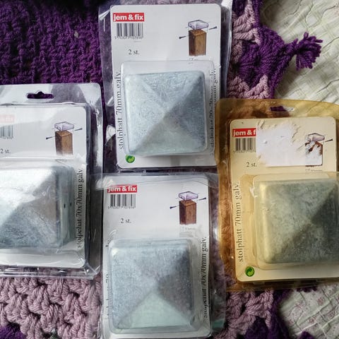 20 stk. galvaniseret stolpehatte. Måler 121x121mm. Nogle lidt brugt, andre ikke pakket ud.