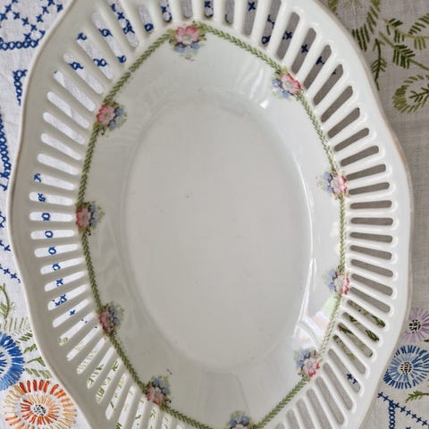 Porcelæn, Antik Kagefad, C. T., Antikt tysk kagefad.