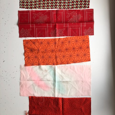 Forskellige afklip af japanske tekstiler(sort med blomster er ikke fra Japan)