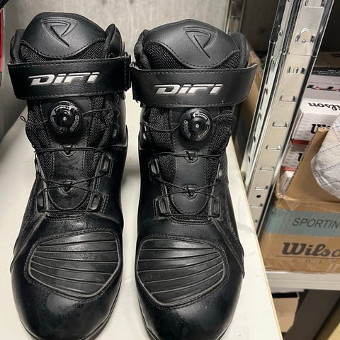 Størrelse 43 med forstærket hæl og tåkappe.