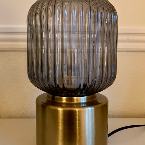 Lille fin bordlampe, i rimelig stand. Pære medfølger. H:23