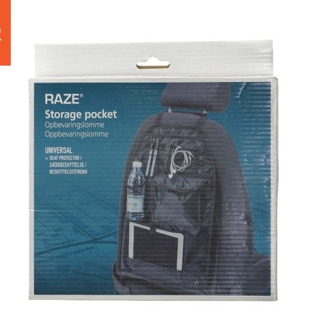 Praktisk opbevaringslomme til montering bag på forsædet.