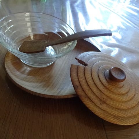 Lille udskåret ske i teak