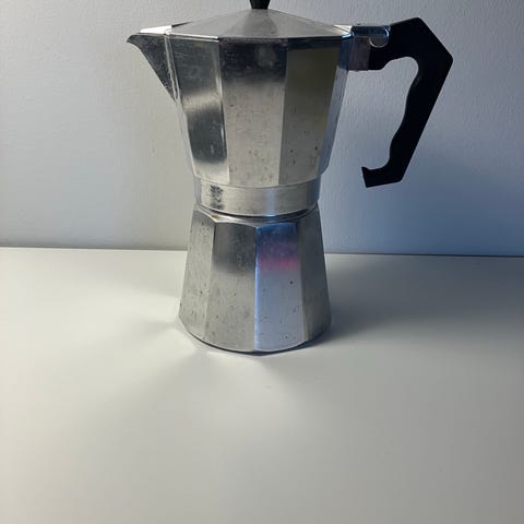 Vintage 1980s Inoxpran Armonie Design Espresso Maker (6 cups), 18-10 with Gold Trim Made in Italy, very fine condition. Height ca. 28 cm.