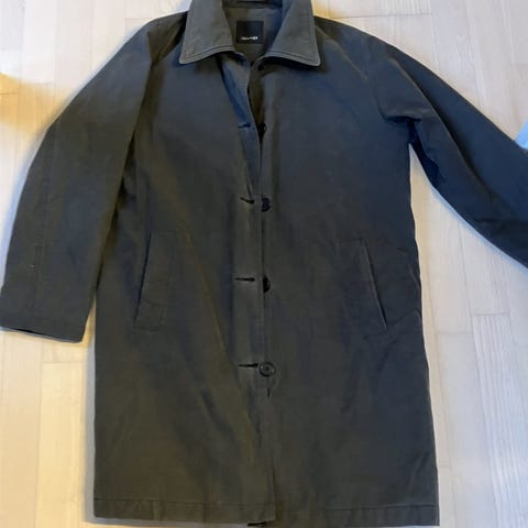 Smuk A formet frakke str. M med masser af lommer og hætte der kan rulles ind i nakken.