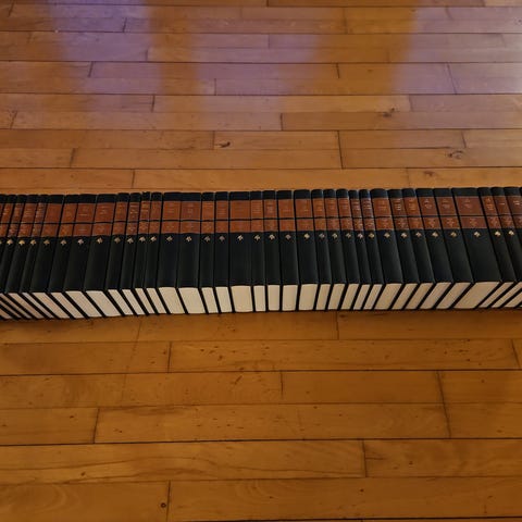 De fleste af bøgerne er i fin stand, mens nogle af bøgerne har lidt slidt ryg.