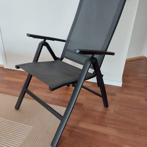 Positionsstole med hynder, 4 stk, Jutlandia, kraftig model i letmetal (uden plastikarmlæn), kan også afhentes ved Bogense