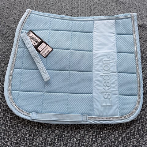 1 CATAGO saddelunderlag lyseblå med kontrast kanter og 1 EQUEST saddelunderlag lys grøn med regnbue kanter, sælges samlet.