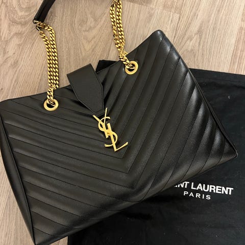 Skuldertaske, Yves Saint Laurent, læder, YSL, MG M PUFFER LAMB, DEEP MARIN. Rigtig fin stand. Brugt kun 2-3 gange. Justerbar længde, og kan bruges som skuldertaske eller som cross over. Dustbag medfølger. Købt i Århus i 2022 i Collage.
