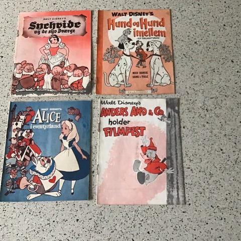 Filmfremviser med tre Disneyfilm. Fremviseren er ca. 20 cm på det højeste sted. Alt fungerer og alle dele er med + en ekstra pære til fremviseren. Brugsanvisning medfølger.