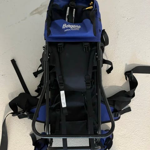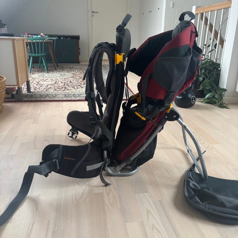 Top model fra VauDe. God komfort for barnet og den voksen der bærer. Desuden sidder barnet rigtig god fast, og den har mange lommer og solbeskyttelse som kan tages på og af meget nemt. Brugsspor, men fejler intet.