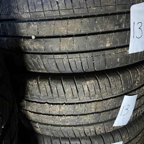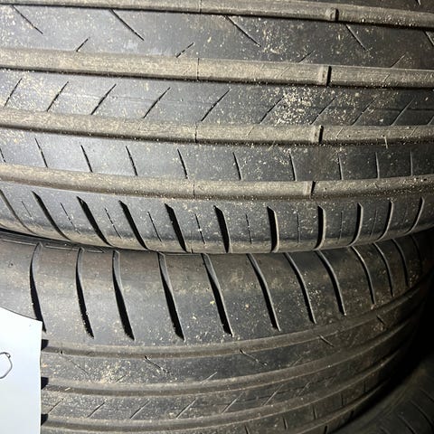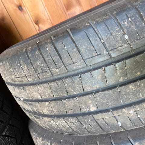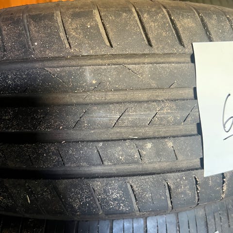 Dækkene er jævnt slidte, uden skader eller lapninger – stadig velegnede til et par sæsoner.