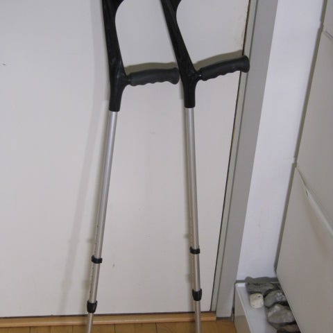 2 Krykker med gummihåndtag. Kan justeres så de passer til 9 højder. Maks 135 kg
