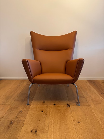 Arne Jacobsen ‘Svanen’ Fritz Hansen ompolstret i Cognac Elegance valnød Læder i den bedste kvalitet. Tidsløst og smuk klassisk dansk møbel design.