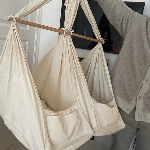 Rummelig, hvid tvillinge-vugge i meget god stand.