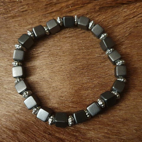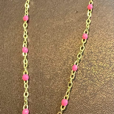 Sødt pink armbånd, I 3 forskellige pinke farver med sølv pynt. Håndlavet. Aldrig brugt. Metrialet er plastik og metal og elastiksnor.