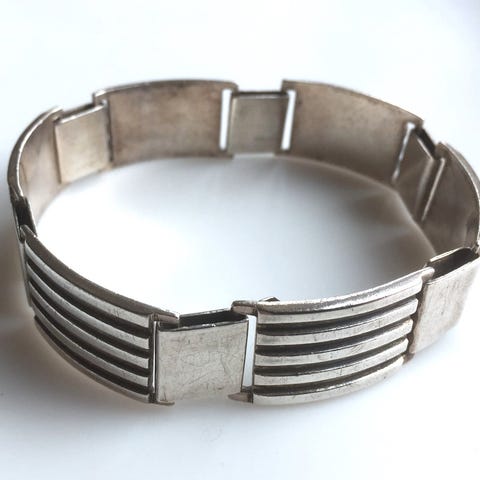 Hugo Grün armlænke 830 sølv med bladværk. Bredde 1,7 cm., længde 20 cm.