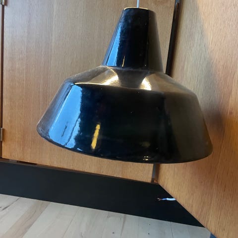 Sælger et sæt klassiske Louis Poulsen Workshop lamper i blank sort.