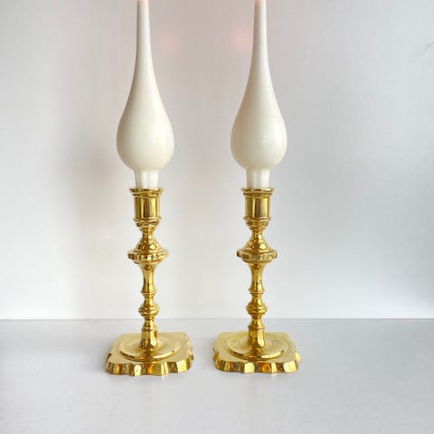 Messing kugle lysestager, 2 gamle messing kugle lysestager med patina. Til alm. kronelys.