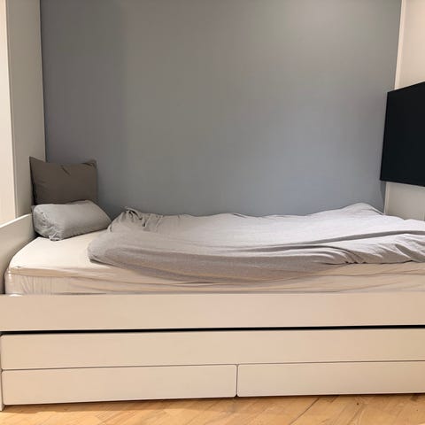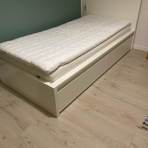 90x200 cm inkl opbevaring nedenunder.