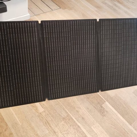 Kan oplade mobiltelefoner, 4 - 6 timer for fuld opladning, afhængig af solmængde.