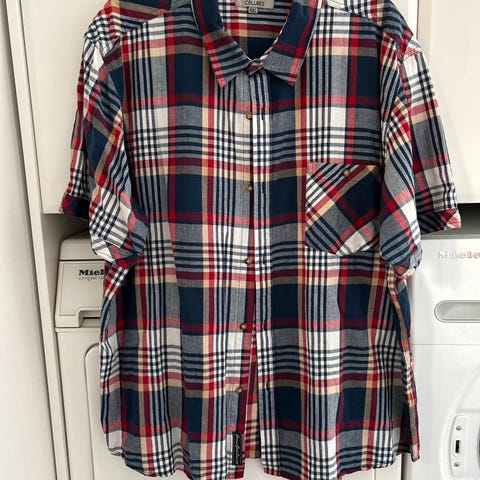 Herreskjorte med korte ærmer i mærket Cellbes. Skjorten er i blødt t-shirtstof, der gør den behagelig og flexibel. Skjorten er lys grøn. Skjorten er kun brugt en enkelt gang. Materialet er 100% bomuld. Brystmål: 142 cm. Længde 88 cm. Fra ikkerygerhjem.