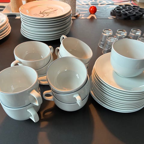 Porcelæn, Kaffestel fra B&G, Convalla, 12 par kopper og desserttallerkner samt kaffekande fra Bing & Grøndahl mærke Convalla sælges samlet for 600 kr.