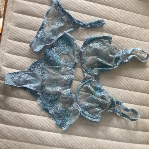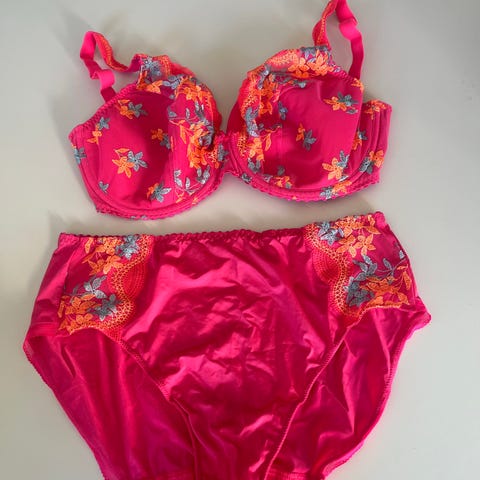PrimaDonna lingeri sæt i gul farve til kvinder i størrelse M. Sættet består af en bh 70E og trusser i str. 38 med delikate blonder og detaljer. Materialet er behageligt og velegnet til daglig brug. Som nyt og sender gerne køber betaler porto.