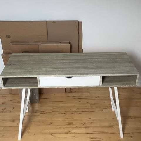 Skrivebordet koster 899 kr fra nyt i Jysk.